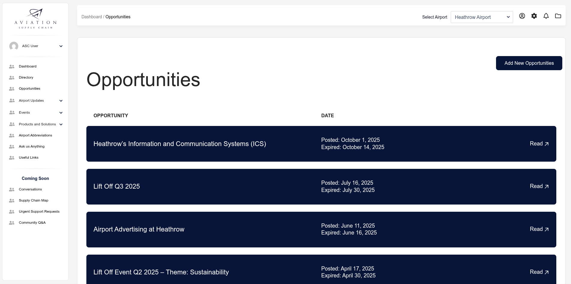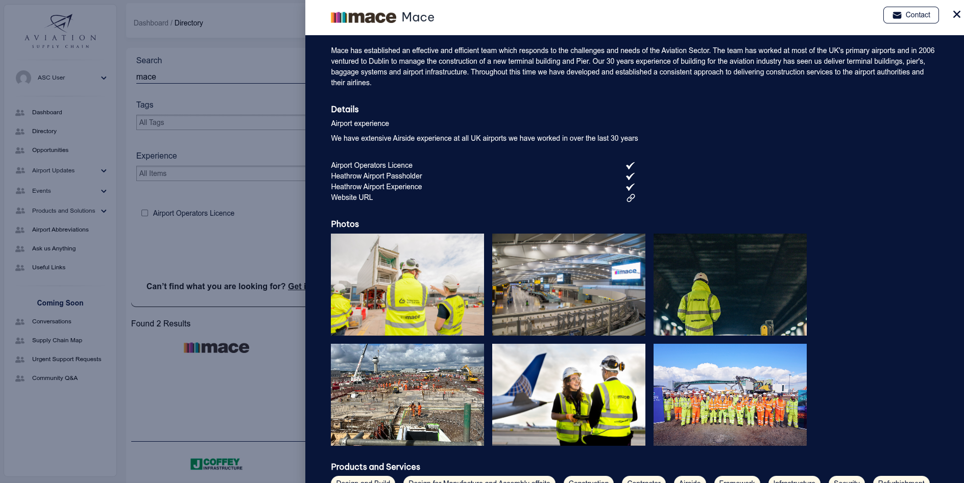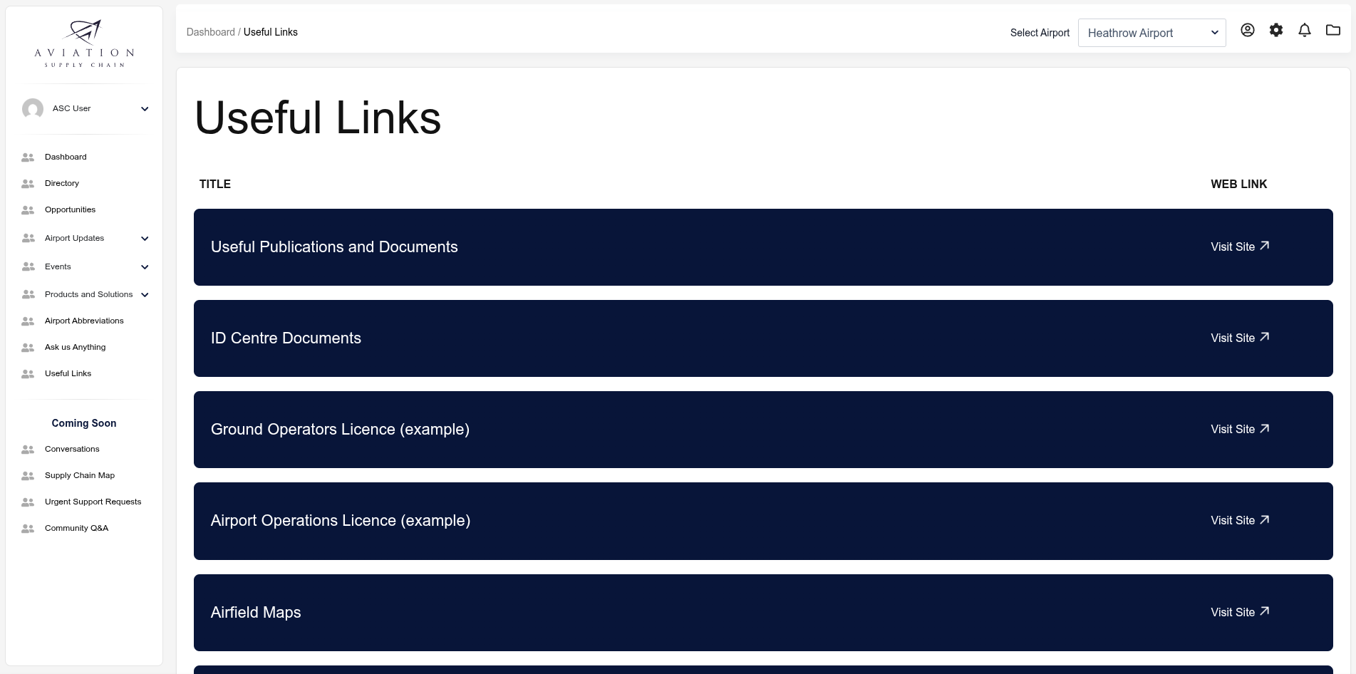 Aviation Supply Chain is where UK airport suppliers and contractors meet. We’re a trusted digital platform that helps you find the right people and get sight of opportunities. Find detailed supplier profiles, visible project opportunities, and a network built on collaboration rather than competition.